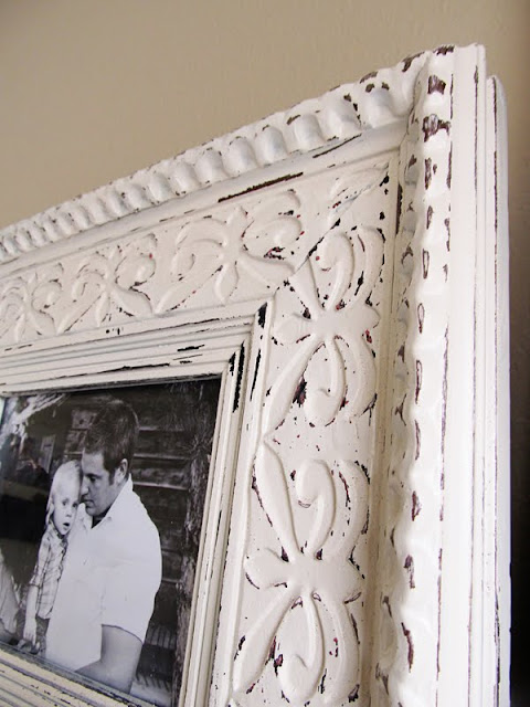 Funny story about the frame above! It's actually 2 frames that I superglued together. The top frame was the teired one, and I loved it, but it was a little too small, so I bought a plain flat frame and glued it behind it! My husband calls these (I made2) the frames of many colors! They have been black, green, maroon and white. I like white the best :)